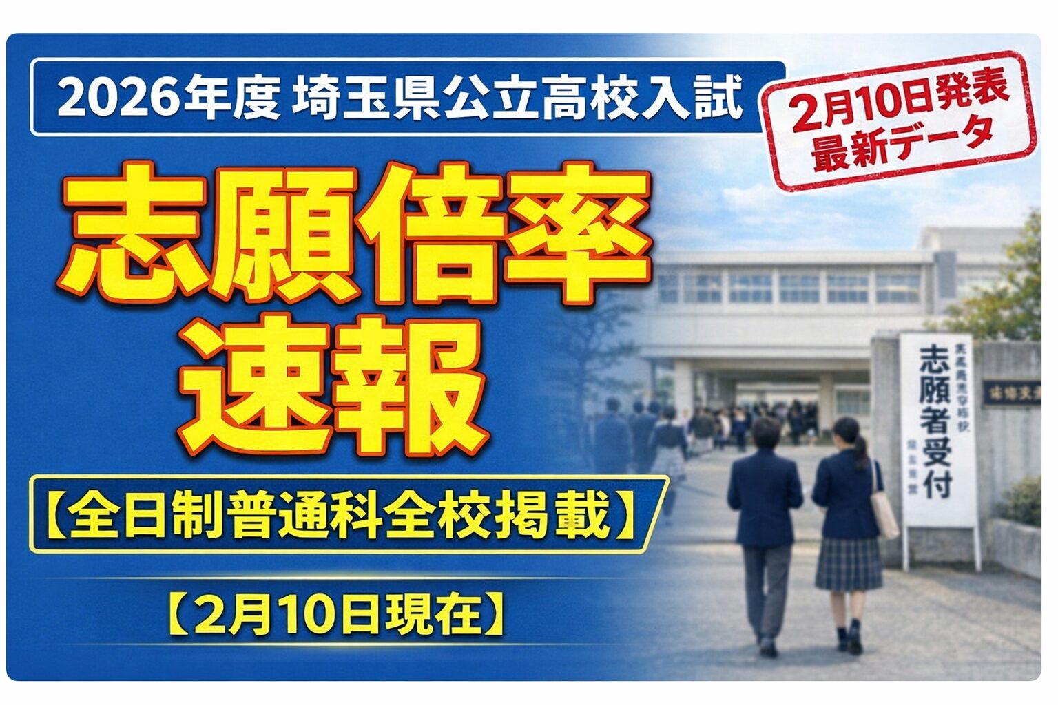 埼玉県教育委員会より、令和8年度公立高校の入学者選抜の志願者数と倍率が発表されました(2月10日時点)。本記事では、受検生の皆さんが最も注目する普通科の倍率推移をエリア別に詳しくまとめています。